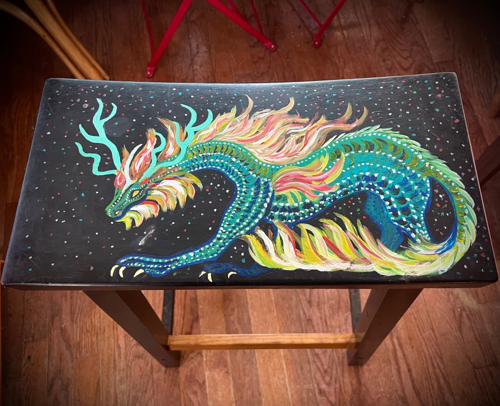 Here are a couple examples of stools that have been painted and varnished to last through years of constant use: