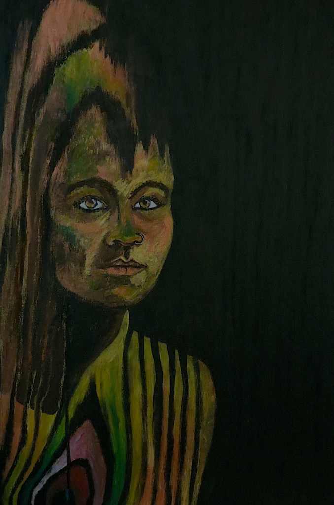 Fae Self Portrait, 16″x24″ acrylic painting on wood panel, 2018: