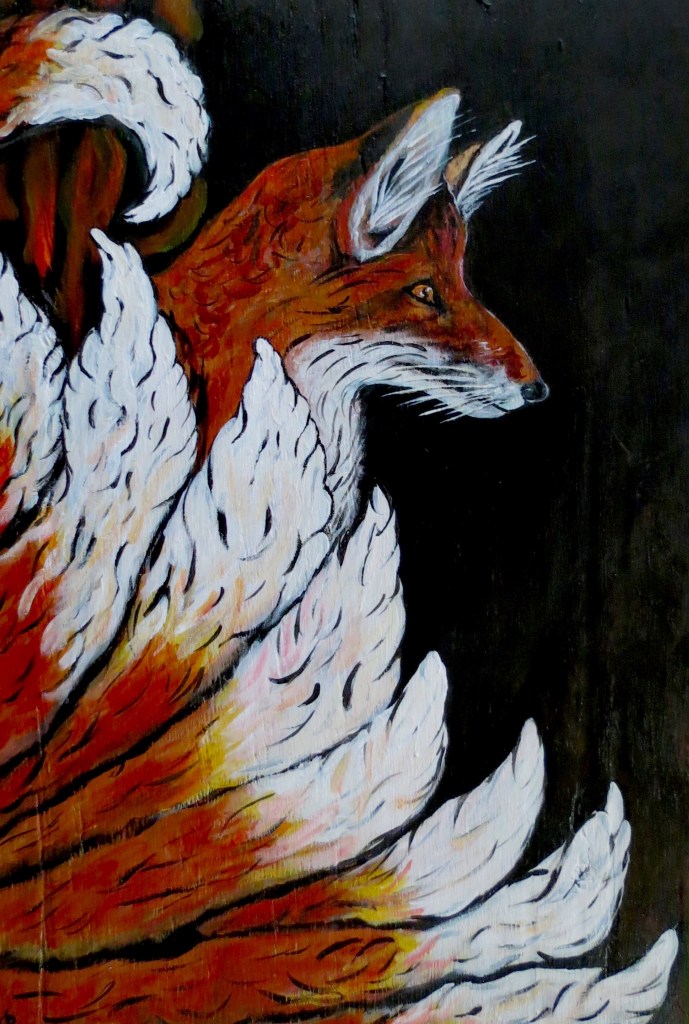 Red Nine-Tailed Fox, 16″x24″ acrylic painting on wood panel, 2018: