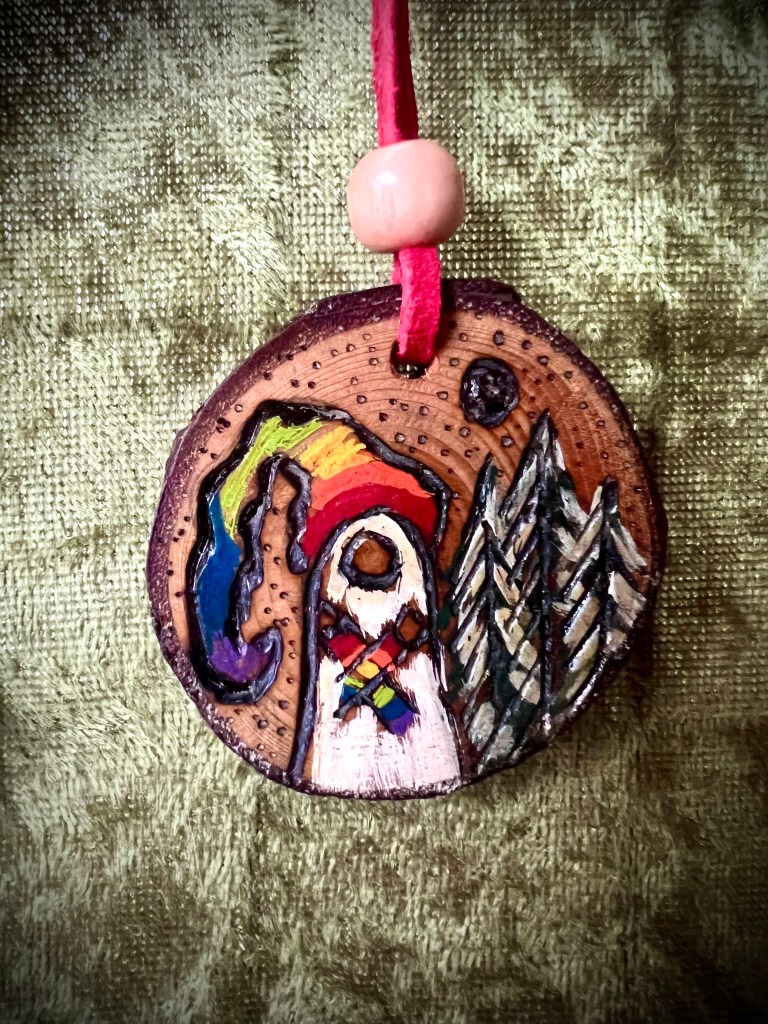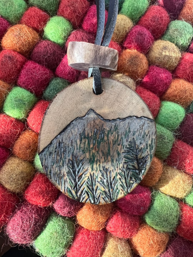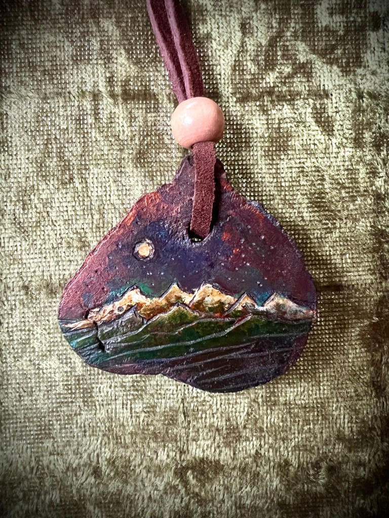 Amulets are made in the same way I craft runes. Each image painted or wood burned onto an amulet holds a deeper intention and meaning. For example, the above autumn red maple leaf was for me to honor the season of Autumn and take its energy into myself as I wear it. I’ve also made mountain amulets to help support the goals I’ve had with hiking mountains, memorial amulets for loved ones that I’ve lost, and amulets to represent the places where I’ve felt the most spiritually at home.